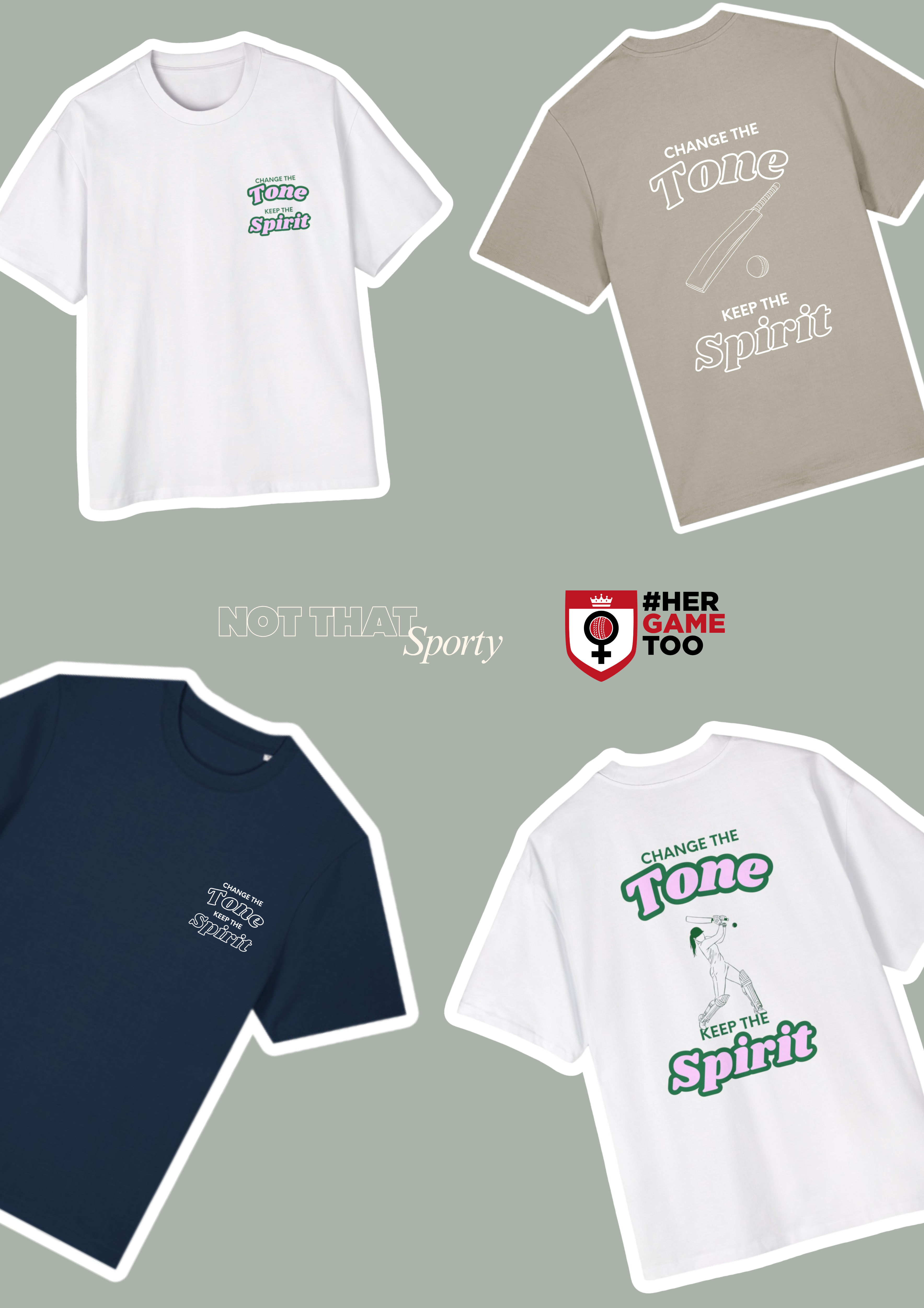 A portion of all profits from the Change the Tone T-Shirts will be donated directly to Her Game Too, supporting the work they do to challenge sexism, strengthen reporting pathways and make cricket welcoming for everyone.